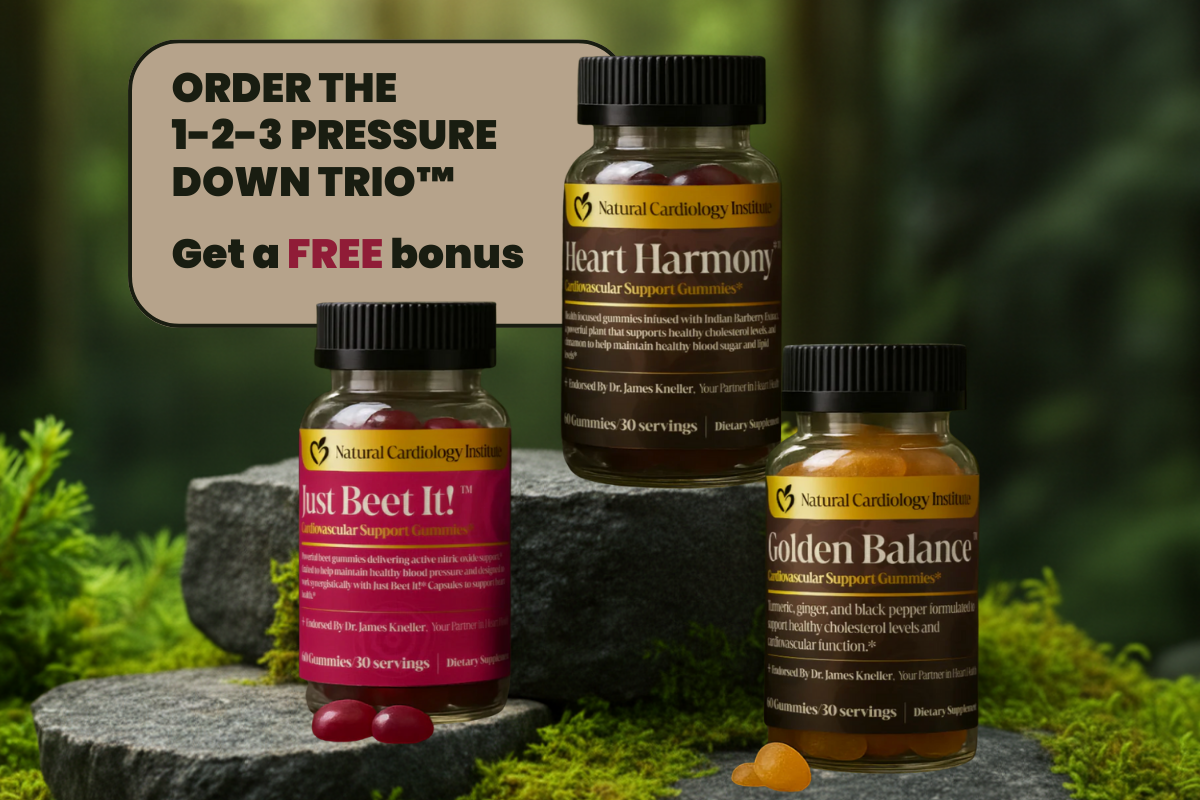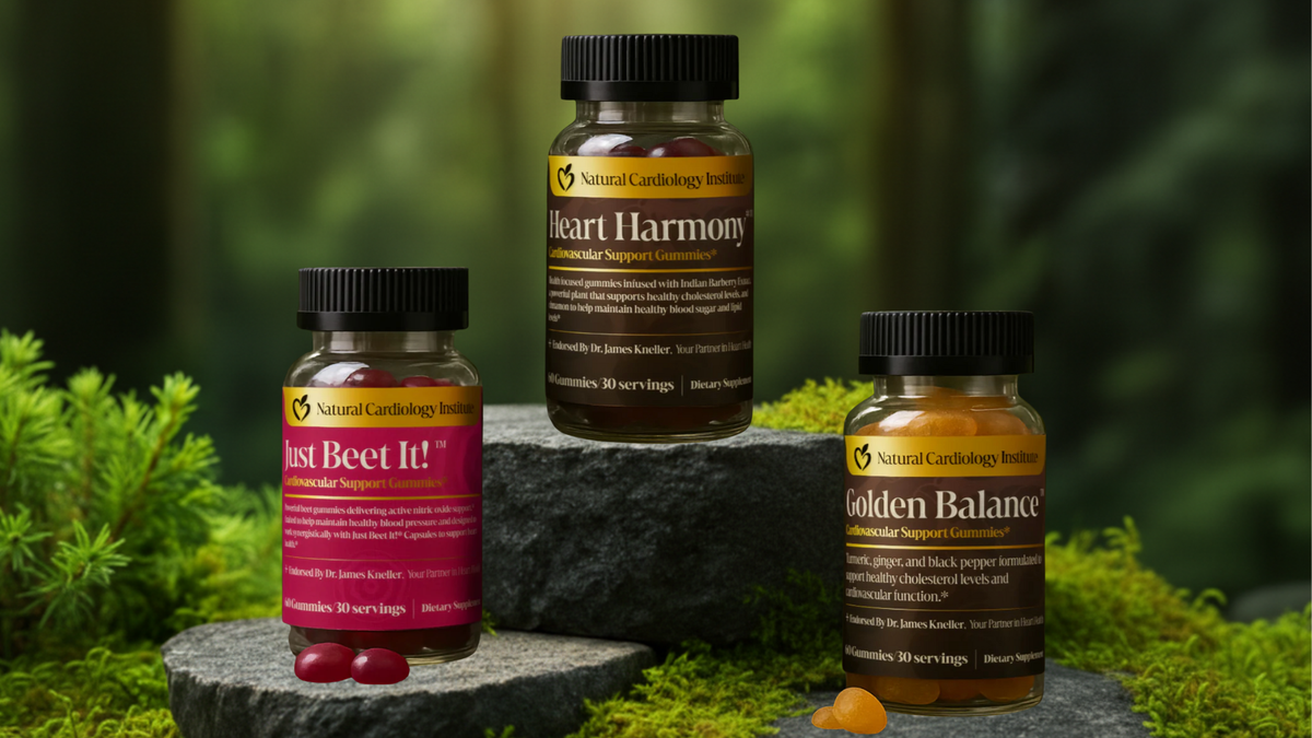 This bundle includes three of our physician-formulated cardiovascular support gummies: Just Beet It!™ – High-potency beetroot, grape seed extract, and CoQ10 for nitric-oxide support, circulation, and cellular energy. Golden Balance™ – A turmeric-ginger blend designed to support a healthy inflammatory response and protect cholesterol particles from oxidation. Heart Harmony™ – Berberine + Ceylon cinnamon to support healthy cholesterol, triglycerides, insulin sensitivity, and metabolic function. Each product is vegan, gluten-free, non-GMO, and formulated under clinical guidance.