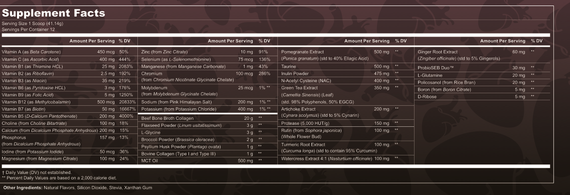 Cardio Bone Broth delivers 60 active ingredients—including essential vitamins, minerals, collagen peptides, amino acids, antioxidants, probiotics, and heart-supporting botanicals—specifically formulated to lower cholesterol and reverse heart disease.* Independent scientific studies have established the contribution of each ingredient.